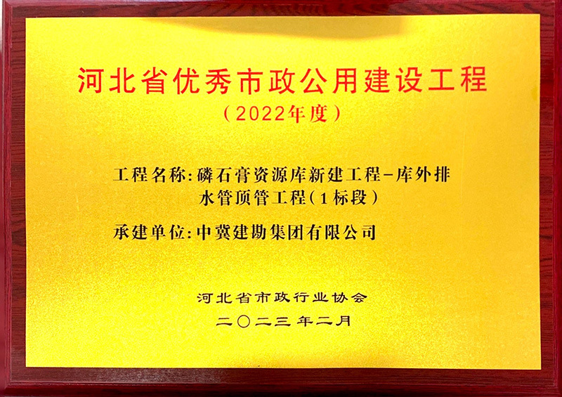 近日,河北省市政行業(yè)協(xié)會(huì)發(fā)布消息,經(jīng)過審核申報(bào)材料、查驗(yàn)施工現(xiàn)場(chǎng)、專家綜合評(píng)議,我公司市政工程項(xiàng)目“磷石膏資源庫新建工程——庫外水管頂管工程(1標(biāo)段)”被評(píng)為河北省優(yōu)秀市政公用建設(shè)工程,并為項(xiàng)目經(jīng)理高立康同志頒發(fā)了榮譽(yù)證書。