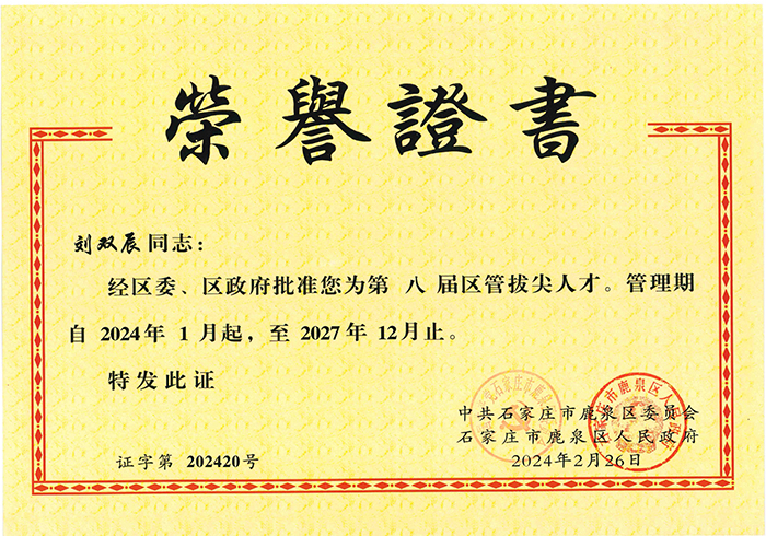 經(jīng)公司組織申報(bào),中共石家莊市鹿泉區(qū)委員會(huì)組織資格審核、綜合評(píng)審、征求意見、實(shí)地考察、區(qū)委常委會(huì)議研究等程序,我公司夏文超、劉雙辰入選石家莊市鹿泉區(qū)第八屆拔尖人才。