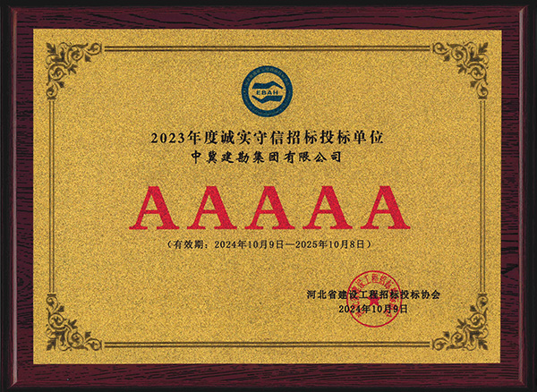 近日,我公司被河北省建設(shè)工程招標(biāo)投標(biāo)協(xié)會評為2023年度河北省建設(shè)工程招標(biāo)投標(biāo)誠實(shí)守信5A級施工企業(yè)。