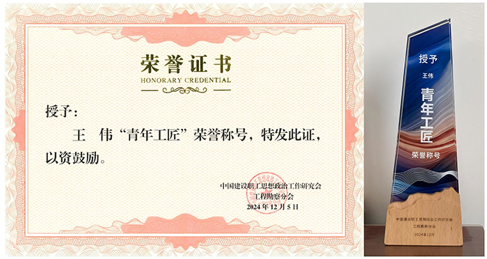 經(jīng)公司積極申報推薦,中國建設職工思想政治工作研究會工程勘察分會嚴格審核,一公司經(jīng)理王偉同志榮獲“青年工匠”榮譽稱號。