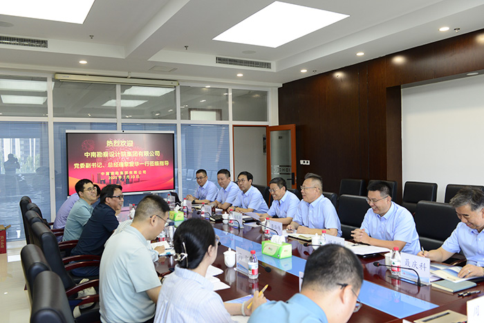 7月23日,中南勘察設計院集團有限公司黨委副書記、總經(jīng)理黎愛華一行蒞臨我集團交流訪問。集團公司董事長李華偉、總經(jīng)理劉晶晶、副總經(jīng)理劉利平、總工程師聶慶科、總經(jīng)濟師胡建敏、工會主席孫運青、監(jiān)事會主席李友東進行接待與座談,安全生產(chǎn)部主任王厚星、綜合辦公室主任周勇陪同參加。