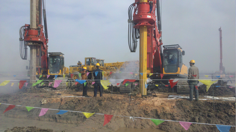 施工內(nèi)容包括:灌注樁鋼筋籠制作、運(yùn)輸及安放,鉆孔樁成孔、商品砼采買(mǎi)、砼灌注等工作。我公司采用旋挖鉆機(jī)成孔,樁數(shù)總計(jì)906根,樁徑600mm,樁身混凝土強(qiáng)度等級(jí)C35,灌注混凝土9103m3。