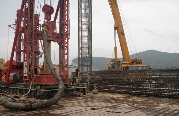 共完成直徑φ2.5m,樁長113m、21根鉆孔灌注樁,混凝土灌注量 11838.5 m3。