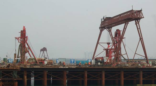 襄樊市內(nèi)環(huán)線漢江三橋是襄樊市大型市政橋梁工程、襄樊市標(biāo)志性建筑。我公司投入氣舉反循環(huán)鉆機(jī)4臺(tái),共完成29#主墩和28#邊墩共42根鉆孔灌注樁施工,成孔樁徑1.5-2.0m,最大成孔深度90m,施工時(shí)間為2010.2.27~2010.7.24。