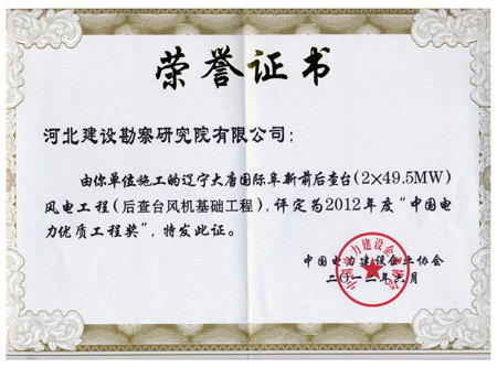 近日,由我公司參與施工的遼寧大唐國際阜新前后查臺(tái)2×49.5MW風(fēng)電工程(后查臺(tái)風(fēng)機(jī)基礎(chǔ)工程)被中國電力建設(shè)企業(yè)協(xié)會(huì)評(píng)定為2012年度“中國電力優(yōu)質(zhì)工程獎(jiǎng)”。