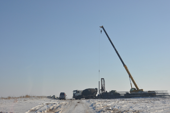 華能大慶綠源風(fēng)電五棵樹風(fēng)電場(chǎng)以及華能大慶綠源風(fēng)電新立風(fēng)電場(chǎng)樁基工程均位于黑龍江省大慶市大同區(qū)五棵樹以北。本工程為風(fēng)機(jī)承臺(tái)下鉆孔灌注樁施工,地層主要以粉土為主。施工時(shí)采用回轉(zhuǎn)鉆機(jī)反循環(huán)成孔,本項(xiàng)目共完成直徑800mm鉆孔灌注樁814根,灌注混凝土14133.43 m3,鋼筋加工1573.71t,后壓漿1440m3。